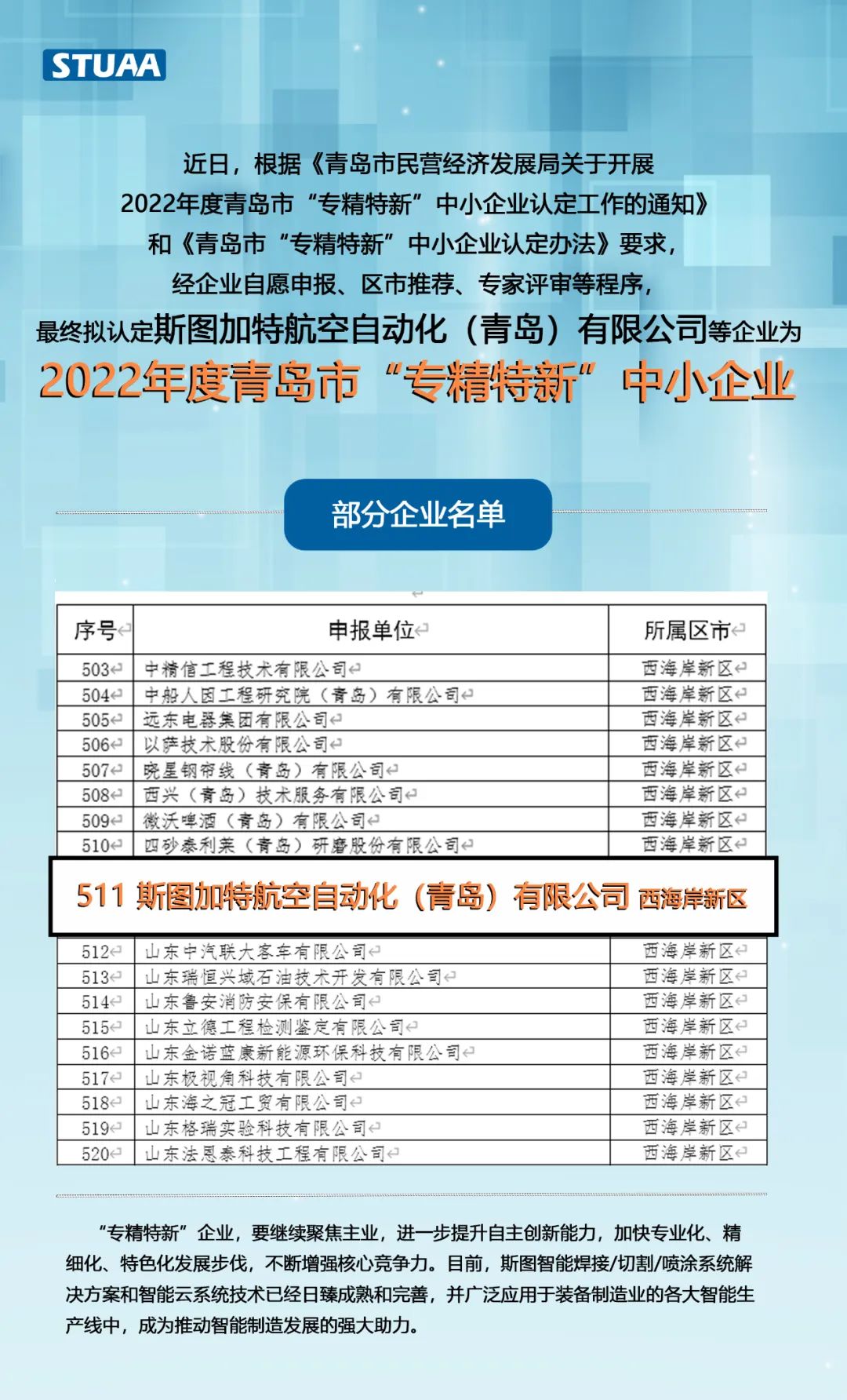 斯图上榜2022年专精特新企业!