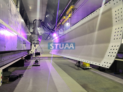 产品简介: 风电结构件智能化产线将喷砂、喷锌、喷漆三个工序整合成一条整线,通过积放链、吊葫芦、防爆重载RGV等方式实现各个工序间的